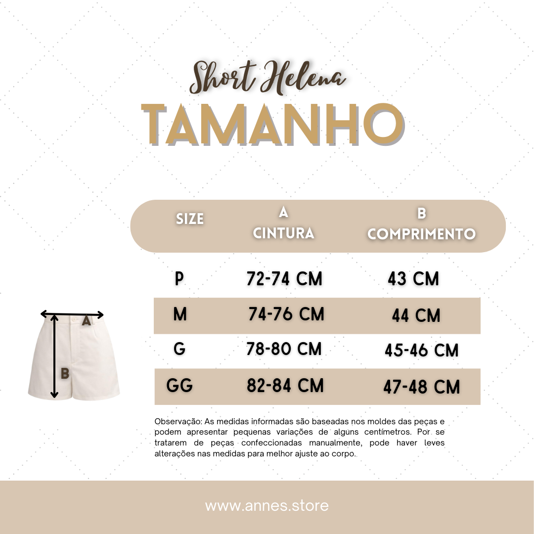 O Short Helena é uma peça versátil que combina elegância e conforto no dia a dia. Confeccionado em tecido alfaiataria Prada, ele possui um caimento leve, estruturado e muito confortável.