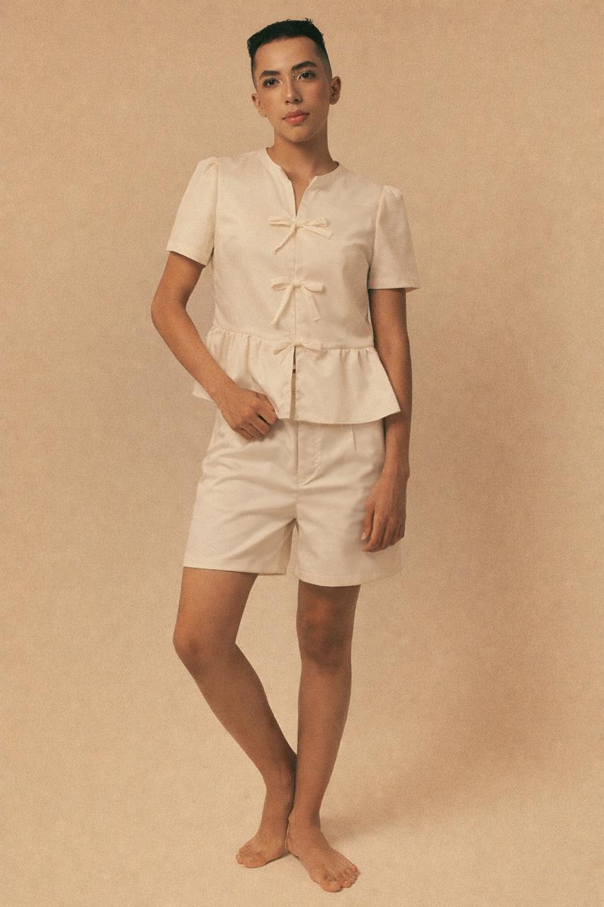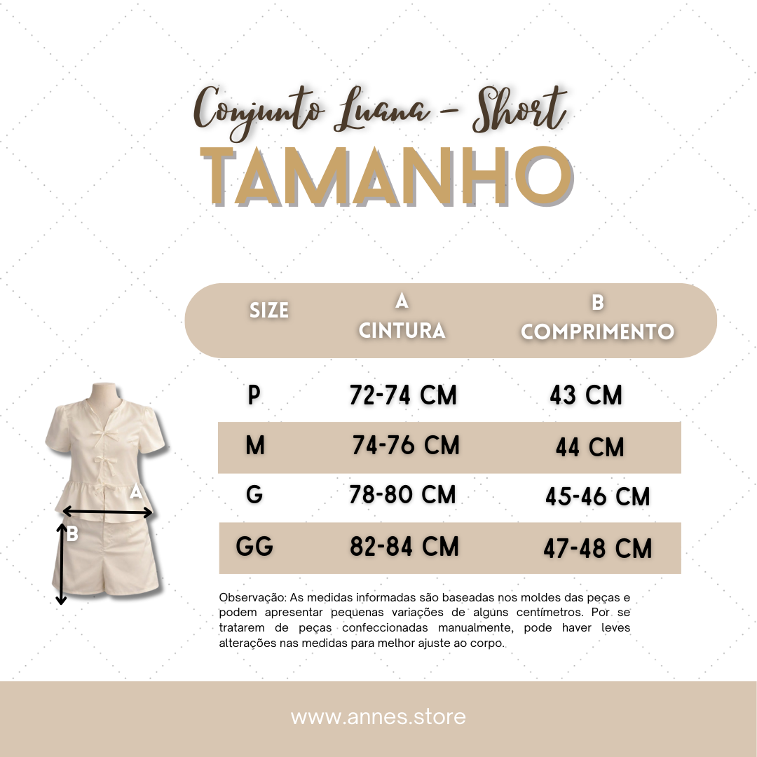 O conjunto acompanha short de modelagem confortável, pensado para oferecer mobilidade e praticidade no dia a dia, mantendo a sofisticação da composição.