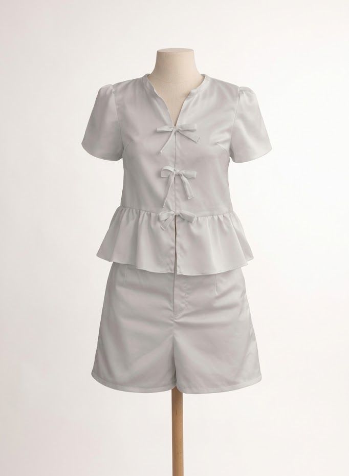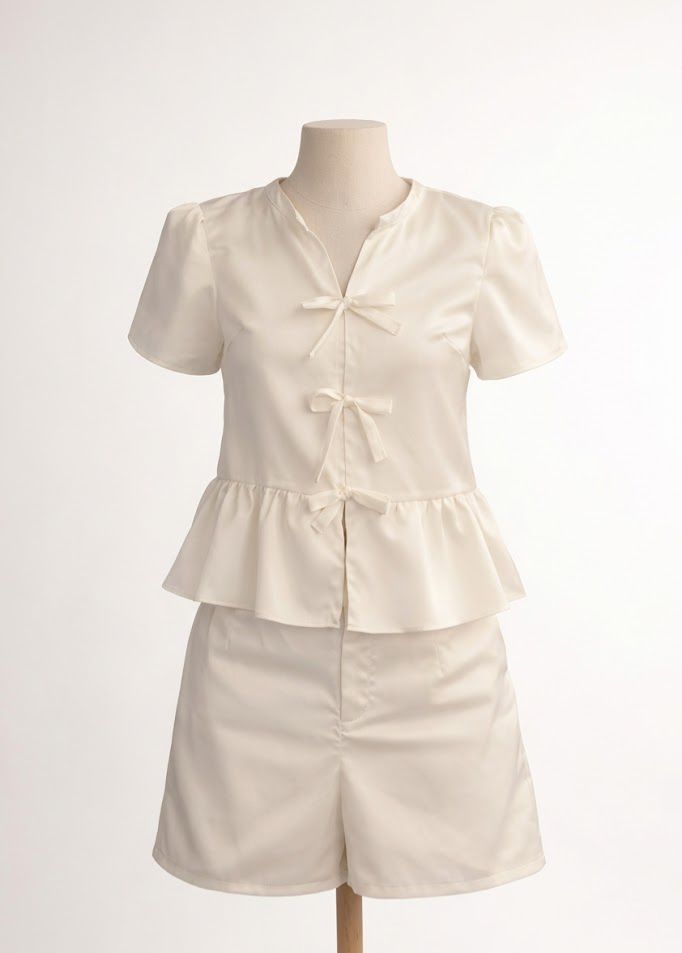 A blusa peplum possui modelagem estruturada que valoriza a silhueta, com um leve babado na barra que cria um caimento fluido e delicado. O destaque fica por conta dos laços frontais, que trazem charme e um toque romântico ao look.